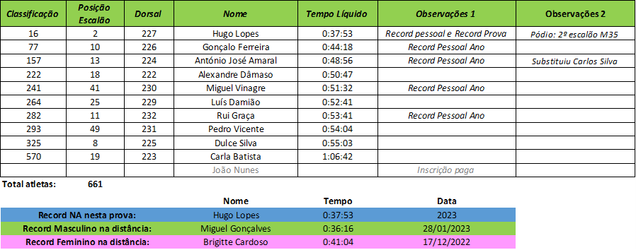 - Hugo Lopes bateu o seu recorde pessoal e o recorde da prova com um excelente tempo (37:53), o 18º melhor registo do NA aos 10k